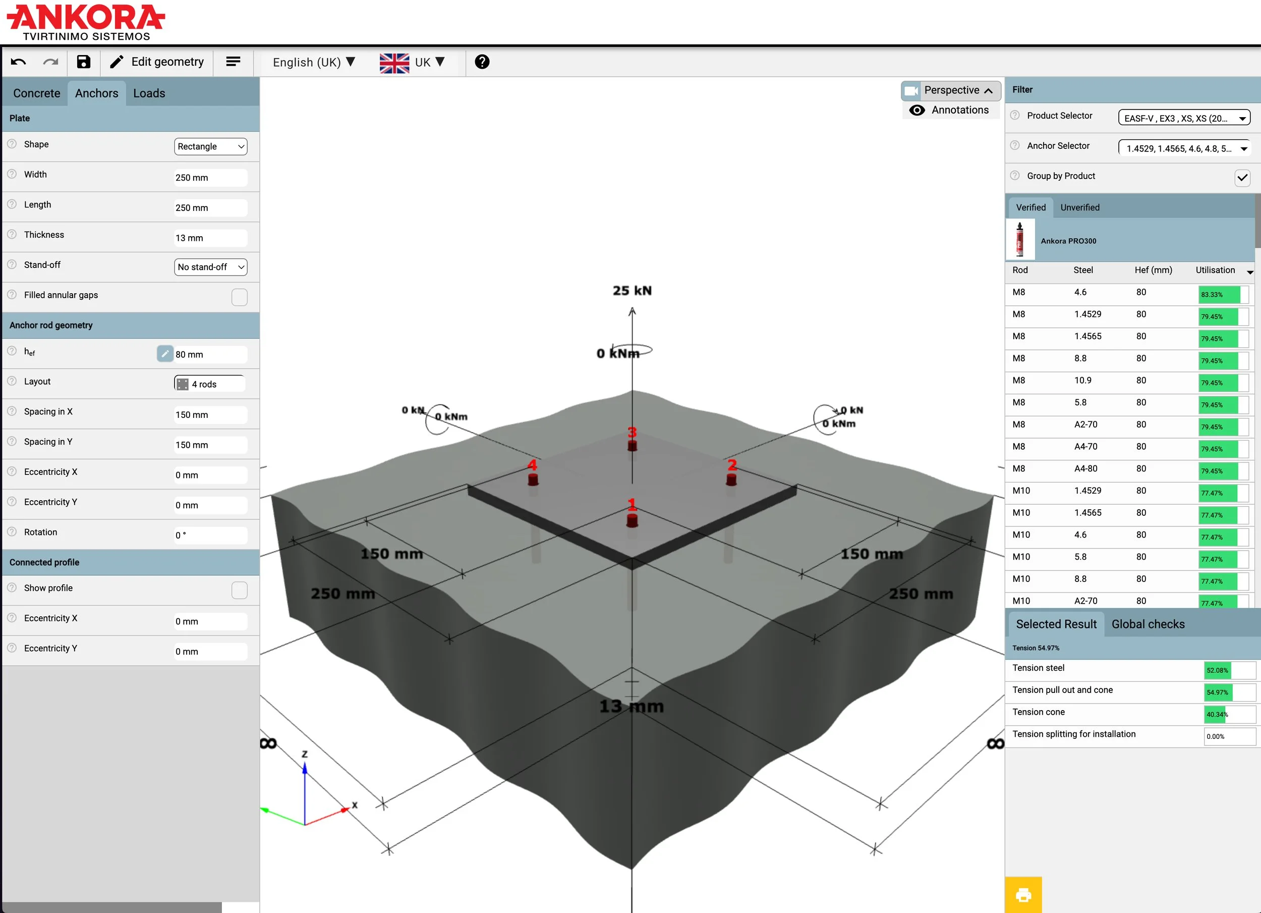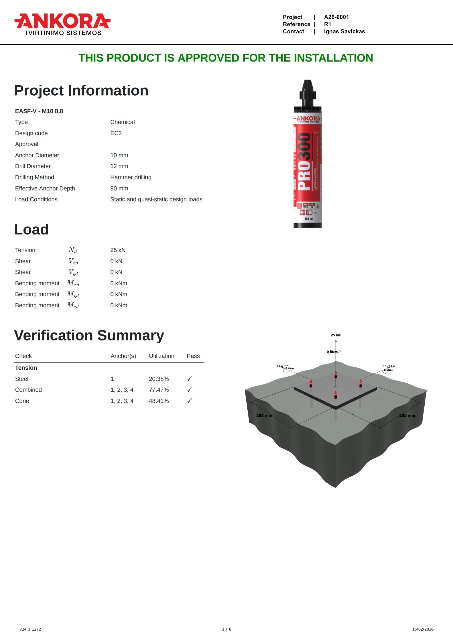 Parenkame inkarų tipą, dydį ir kiekį pagal jūsų projekto apkrovas ir pagrindo sąlygas. Skaičiavimai atliekami remiantis ETA duomenimis ir pateikiami kaip dokumentas, kurį galite įtraukti į projekto bylą.