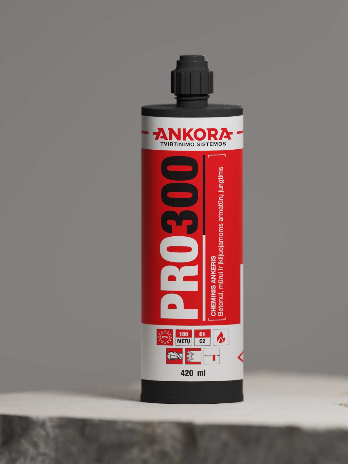 Ankora PRO300 – tai naujos kartos cheminio inkaravimo sistema, sukurta reikliausioms konstrukcinio tvirtinimo užduotims. Produktas pasižymi itin aukšta laikomąja geba, plačiais ETA patvirtinimais ir 100 metų projektine eksploatavimo trukme.